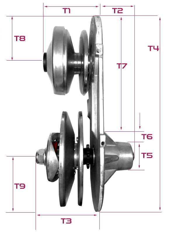 T9 = Distance from rear edge of backplate to centre of jackshaft / driven rear pulley: ¬90mm